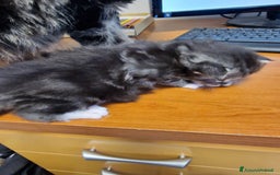 Lei è una spettacolare cucciola di Maine Coon femmina nel particolare mantello black smoke, ha già tre mesi compiuti e ha un carattere fenomenale, al di del fatto che cerchi sempre le coccole, ci segue ovunque, dorme con noi, va d'accordo con i cani e adora i bambini, come è tipico per i Maine, lei è una macchina per fare le fusa, ti fa le fusa anche solo se la guardi, ma è un vero concentrato di allegria e follia, ci fa morire dal ridere, è veramente unica e sicuramente destinata ad una famiglia che ha bisogno di una ventata di gioia. Viene ceduta già vaccinata (doppio vaccino trivalente) e sverminata, con pedigree DA COMPAGNIA, test genetici dei genitori (fiv, felv, sma, hcm, pkdef, pkd e gruppo sanguigno) comprensivo di ecocardio annuale ed ecografia renale oltre che esami feci e kit di cibo per i primi giorni. Cerchiamo per lei una famiglia amorevole e amante del legame simbiotico che si crea che questa meravigliosa razza di cui lei è una meravigliosa rappresentante, l' ideale sarebbe che fosse in compagnia di altri animali, indipendentemente dalla specie, perché è abituata a stare sempre in compagnia e vivere come membro della famiglia, è una gattina davvero speciale per noi quindi cerchiamo per lei una famiglia eccezionale che sia disponibile anche a restare in contatto e tenerci informati nell' arco della sua vita. Naturalmente è possibile conoscere personalmente i genitori e la gattina senza alcun vincolo per entrambe le parti.