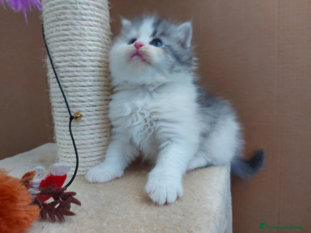 Disponibile 1 cucciolo maschio di gatto siberiano, a pelo semilungo, taglia medio grande, ipoallergenico. Il cucciolo è molto affettuoso e verrà ceduto sverminato, sottoposto a tutte le vaccinazioni obbligatorie previste dalla legge, con libretto sanitario, con microchip, pedigree ANFI, abituato alla lettiera, al tira graffi e alla gattaiola. Oltre che ai test per FIV e FELV, i genitori sono stati sottoposti ai test per malattie genetiche (PKD1, PK-Def e gruppo sanguigno), e ecocardiogramma per maggiore garanzia sulla salute dei gatti. Il cucciolo, nato in data 26/08/2025, sarà disponibile per la cessione a partire dal 6 dicembre 2025, e verrà ceduto, solo a persone che potranno accoglierlo in un habitat consono. Contattatemi per qualsiasi informazione aggiuntiva, solo se veramente interessati. Cortesemente, astenersi curiosi, perditempo ed altro. Grazie
